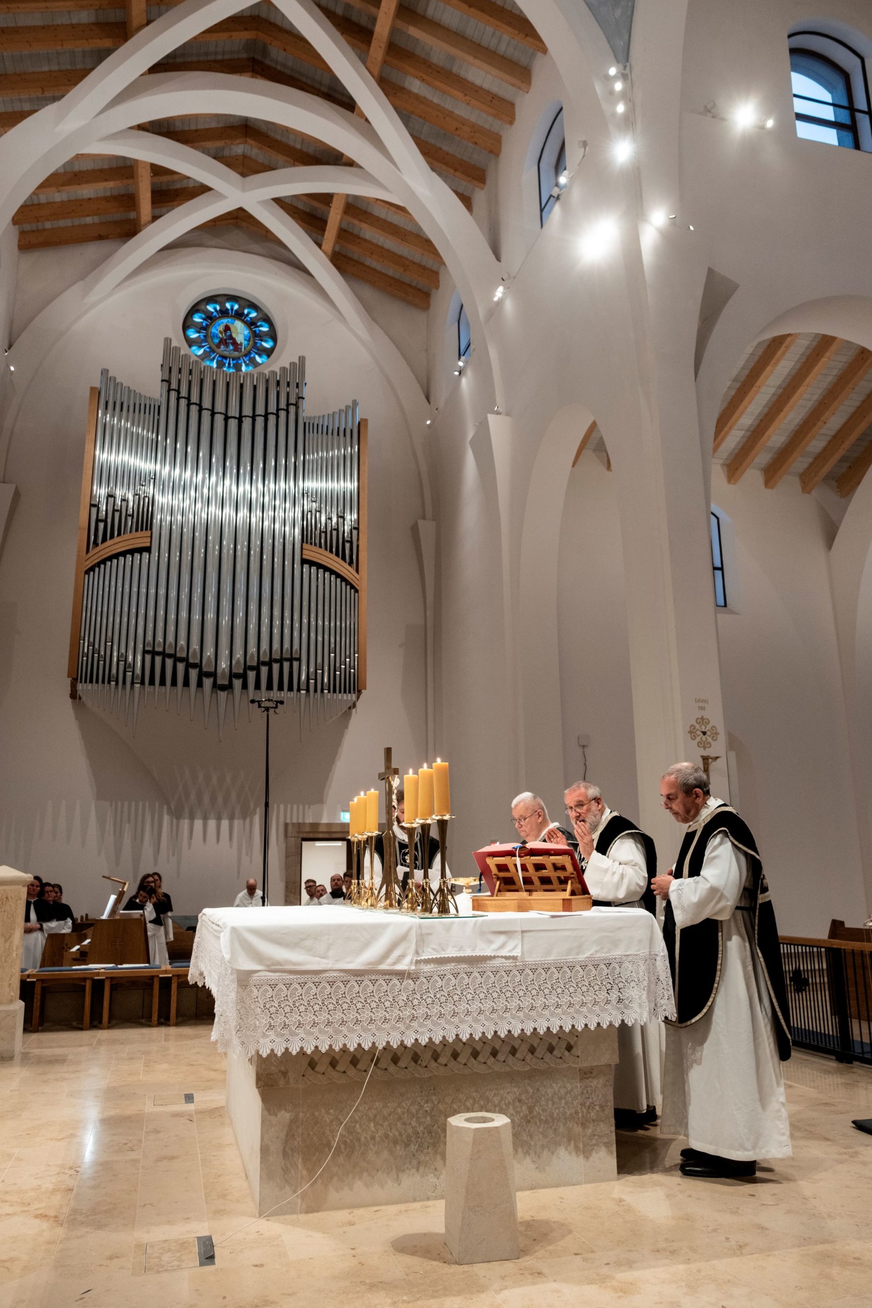 A kétnapos ünnepségen díszes zsolozsmákban, ünnepi szentmiséken adott hálát a templomot immár egy éve használók közössége a templom felépüléséért és a benne szolgálók szolgálatáért. Az első és második vesperás alatt és a templomszentelési szentmisén a tizenkét templomszentelési gyertya lángja jelezte az „élő kövek” fényét és hatását. A rendi és plébániai közösséggel együtt ünnepeltek meghívott vendégeink is. Az énekszolgálatot a Premontrei Kóruscsalád (szkóla, kántorátus, apátsági kórus) és a Szent Efrém Férfikar végezte.