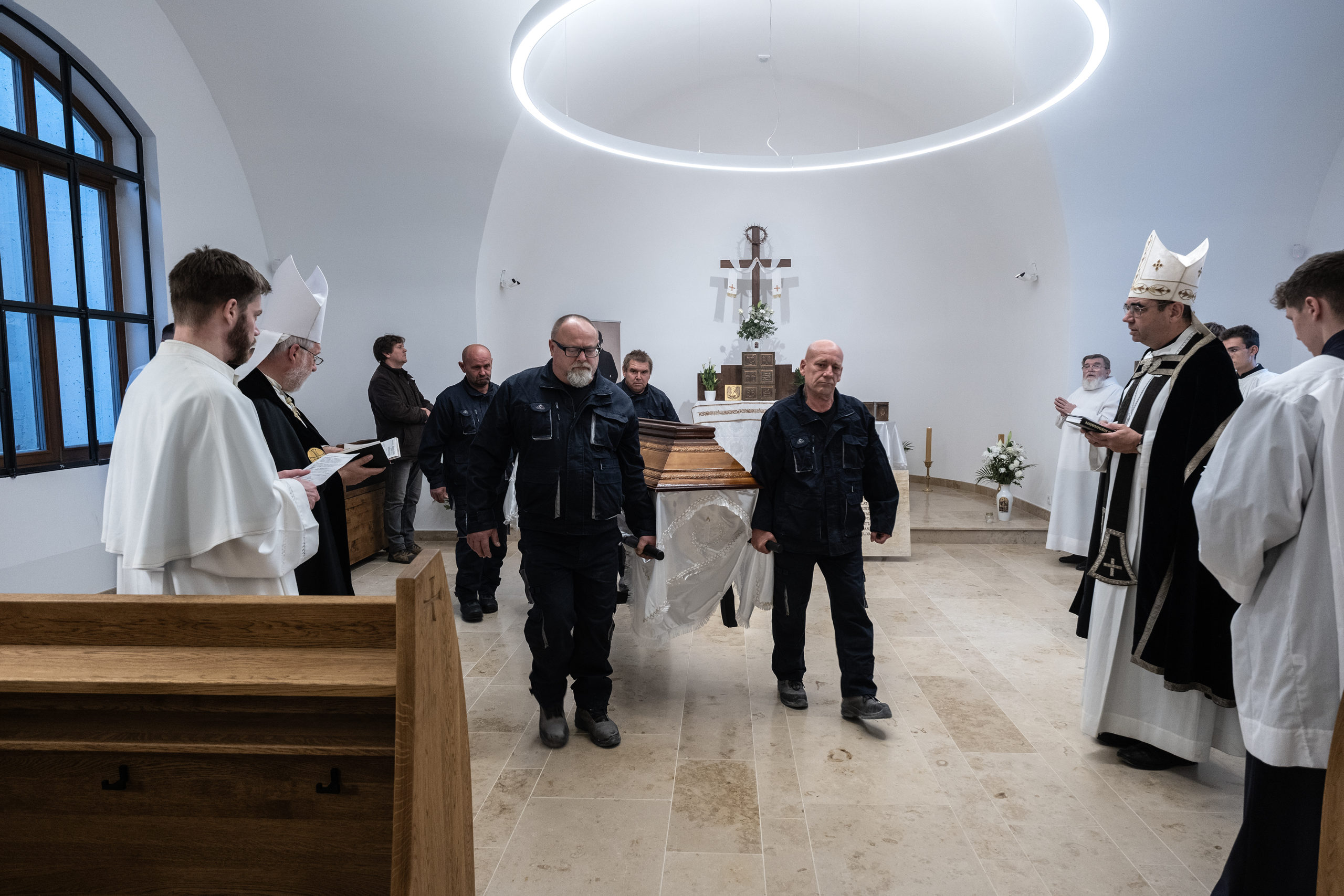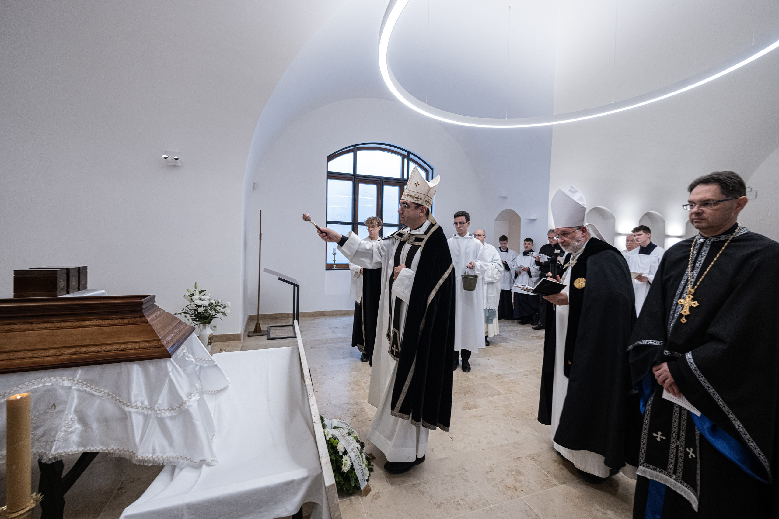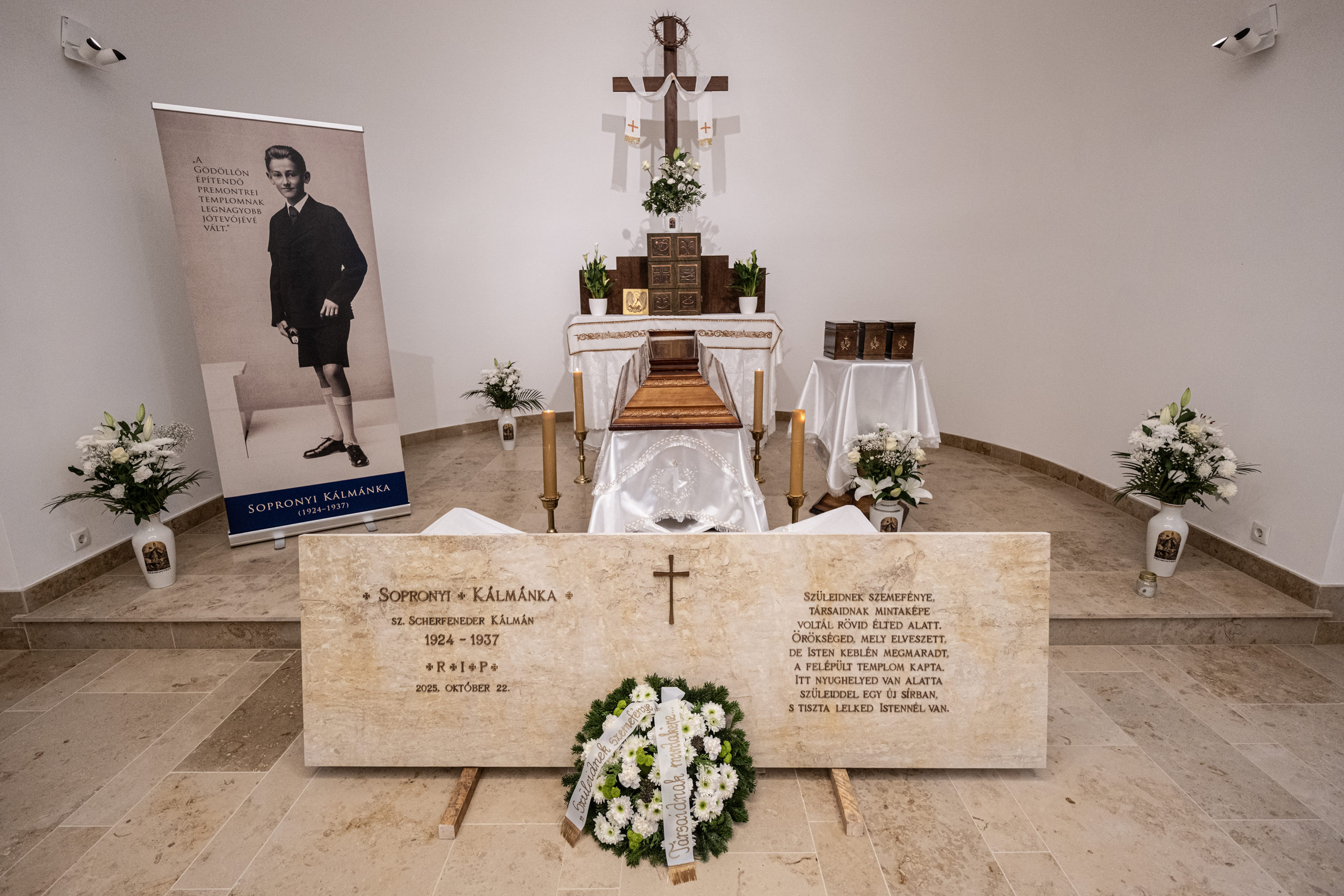 Október 21-én délutántól kezdve volt látogatható Sopronyi Kálmánka és szüleinek ravatala az altemplomban, este gyászmisét mutattak be értük és a család többi elhunyt tagjáért. Másnap délelőtt a Premontrei Iskolaközpont teljes közösségének részvételével zajlott Sopronyi Kálmánka és szüleinek újratemetése a templom kriptájában. A temetési szertartást Dr. Székely János szombathelyi megyéspüspök, az MKPK elnöke és Balogh P. Piusz O. Praem. gödöllői apát végezték. A püspök atya a diákokhoz szóló ünnepi beszédében felhívta a figyelmet az egymás iránti segítő szeretet fontosságára, mely felette áll sok egyéb, egyébként jó tulajdonságnak. Apát úr az egymás iránti tisztelet fontosságáról, a tiszteletadás jelentőségéről, valamint az erényekkel gazdag krisztusi lelkületről beszélt az egybegyűlteknek, mielőtt az összes diák levonult az altemplomba leróni imádságos kegyeletét a 100 évvel korábban élt iskolatársuk előtt. Sopronyi Kálmánka halála előtt örökségének felajánlásával az akkor „Gödöllőn építendő templom legnagyobb jótevőjévé vált”. Egykori tiszta felajánlása mostanra lett valóság. Az ünnepi együttléten a Premi Cantores iskolai kórus énekelt.